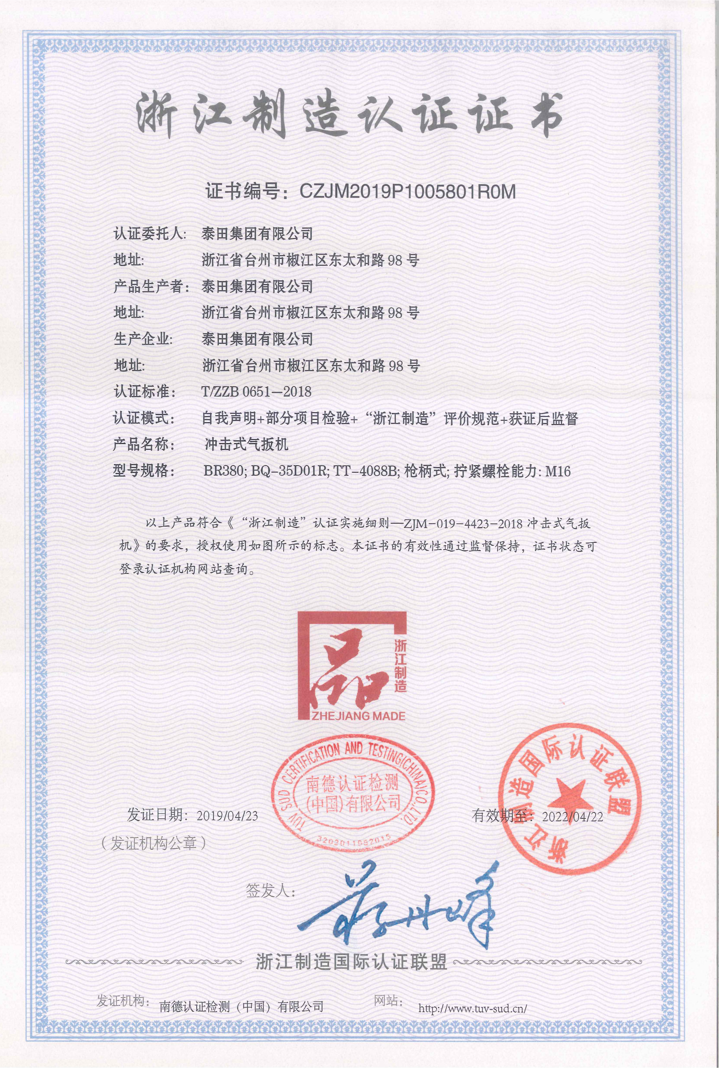 2019年被浙江認(rèn)證制造國際認(rèn)證聯(lián)盟認(rèn)證為“浙江制造”