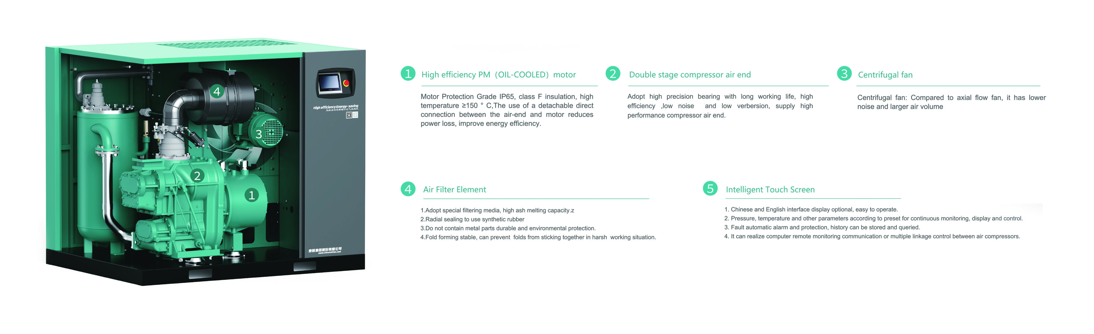 TWO STAGE PM FREQUENCY INVERTER (OIL-COOLED)INTEGRATED TYPE SCREW AIR COMPRESSOR